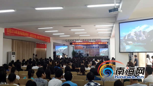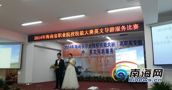 南海網(wǎng)???月22日消息(南海網(wǎng)記者 陳麗娜 通訊員 潘婷婷)4月22日上午,2014年海南省職業(yè)院校技能大賽“中英文導(dǎo)游服務(wù)”比賽在海南外國語職業(yè)學(xué)院進(jìn)行。39名選手在風(fēng)采展示、導(dǎo)游講解、知識(shí)問答等眾多環(huán)節(jié)中上演了一場精彩的中英文比拼好戲。經(jīng)過激烈比賽,海南外國語職業(yè)學(xué)院分別包攬中文導(dǎo)游服務(wù)比賽和英文導(dǎo)游服務(wù)的一等獎(jiǎng)。