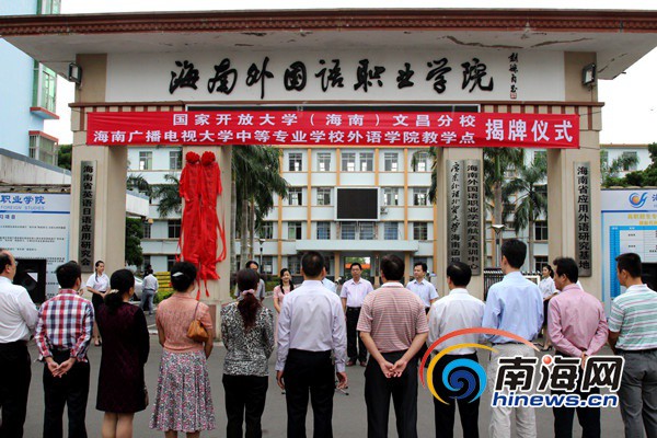 國(guó)家開放大學(xué)(海南)文昌分校、海南廣播電視大學(xué)中等專業(yè)學(xué)校外語(yǔ)學(xué)院教學(xué)點(diǎn)揭牌儀式在海南外國(guó)語(yǔ)職業(yè)學(xué)院舉行(南海網(wǎng)記者陳望攝)
