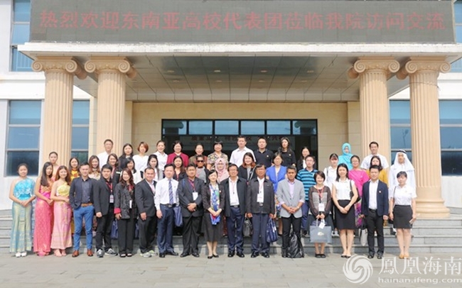 東南亞各國高校訪華團(tuán)成員與海南外國語職業(yè)學(xué)院代表合影留念