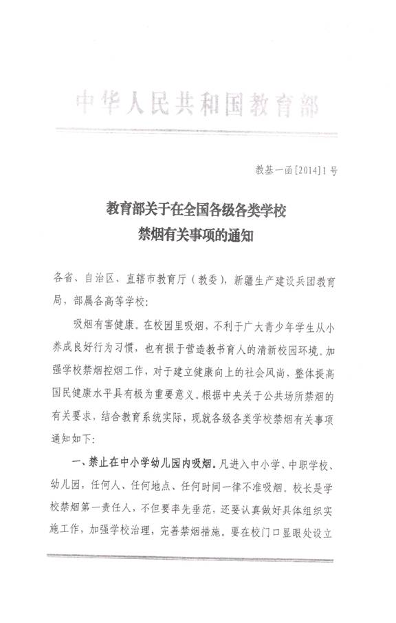 海南省教育廳轉發(fā)教育部關于在全國各級各類學校禁煙有關事項的通知