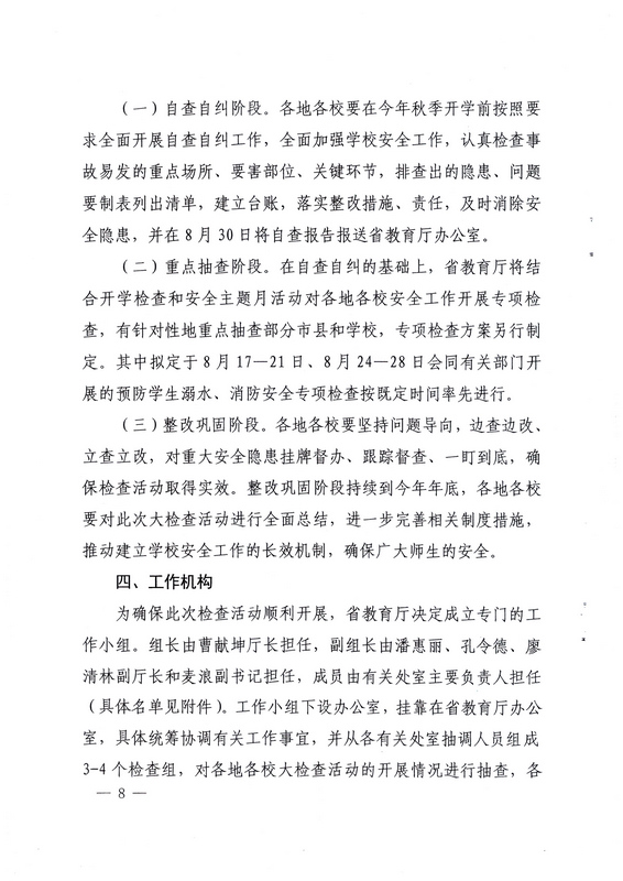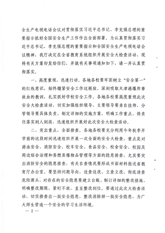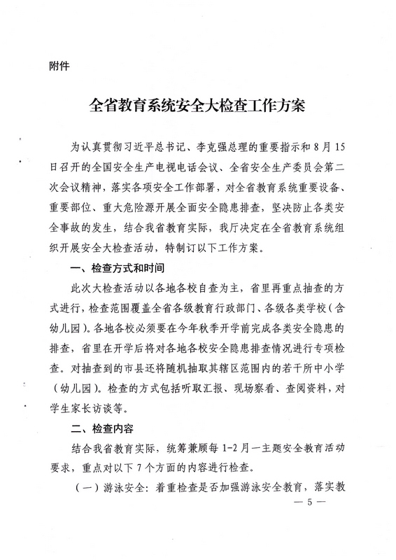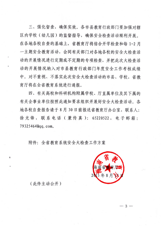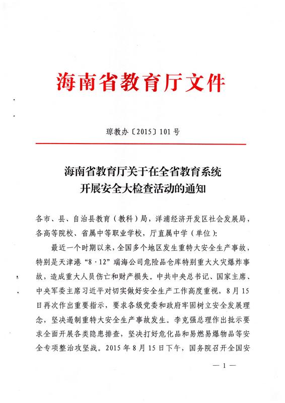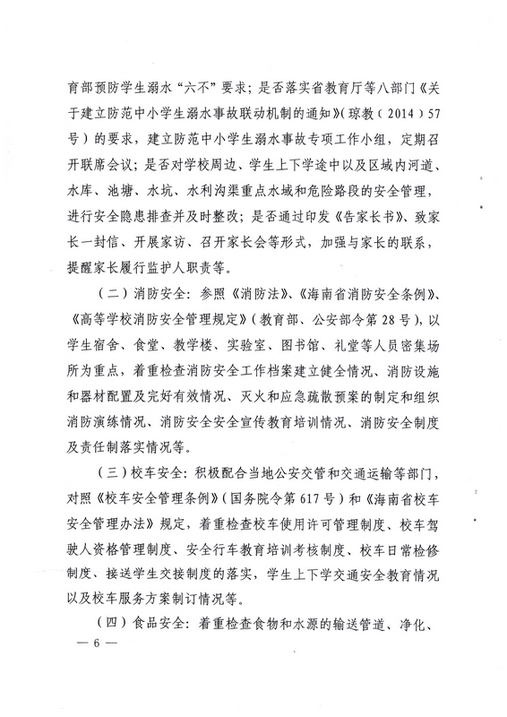 轉(zhuǎn):海南省教育廳關(guān)于在全省教育系統(tǒng)開展安全大檢查活動的通知