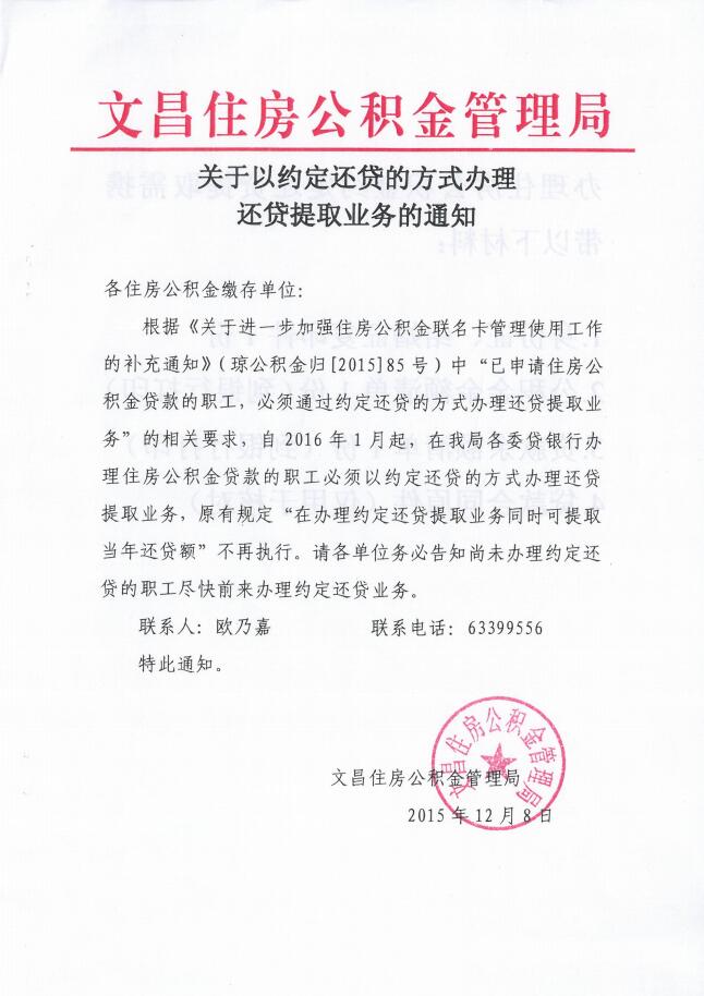 轉(zhuǎn):關(guān)于以約定還貸的方式辦理還貸提取業(yè)務(wù)的通知
