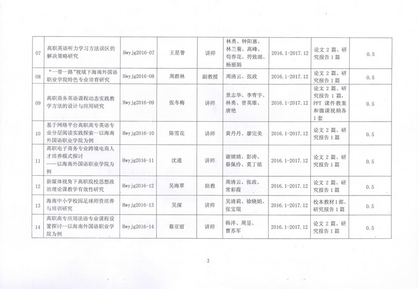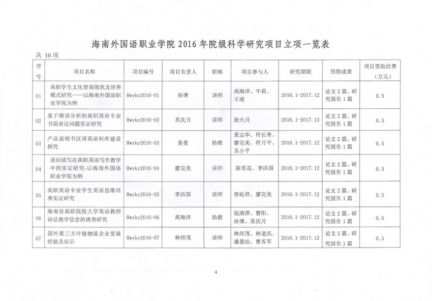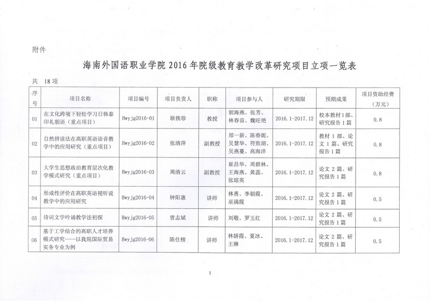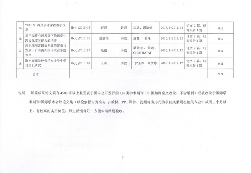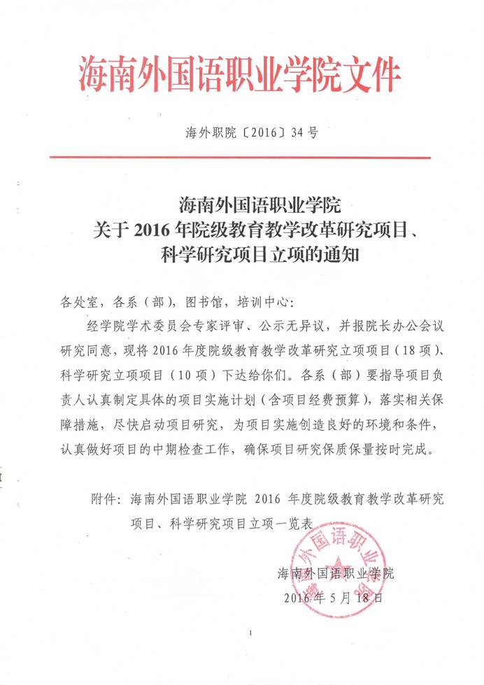 海南外國(guó)語(yǔ)職業(yè)學(xué)院關(guān)于2016年院級(jí)教育教學(xué)改革研究項(xiàng)目、科學(xué)研究項(xiàng)目立項(xiàng)的通知
