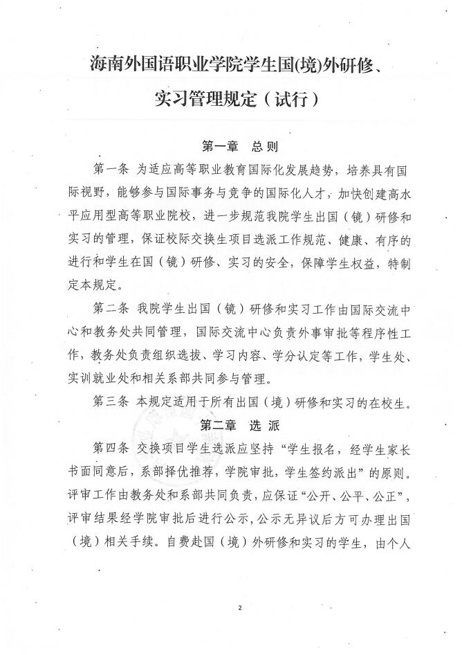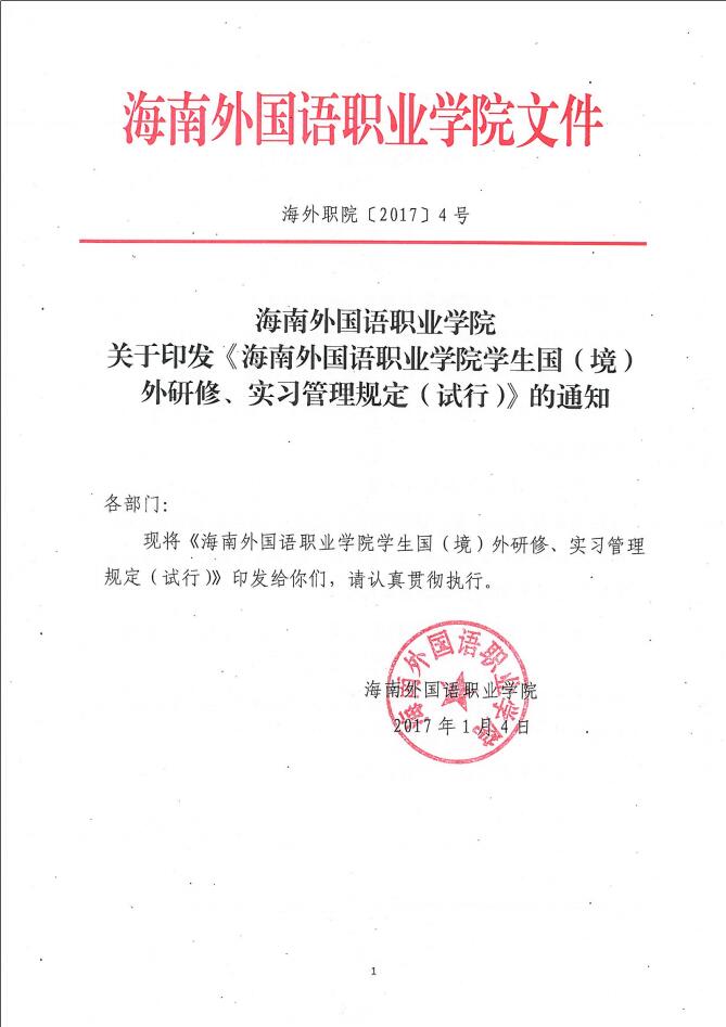 海南外國語職業(yè)學(xué)院關(guān)于印發(fā)《海南外國語職業(yè)學(xué)院學(xué)生國(境)外研修、實(shí)習(xí)管理規(guī)定(試行)》的通知