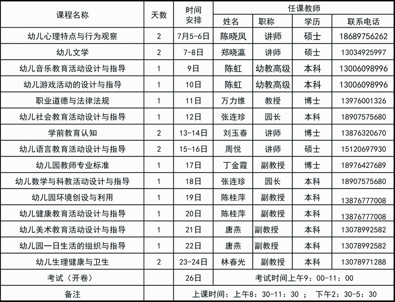 《海南省幼兒教師專業(yè)合格證》培訓(xùn)課程安排表