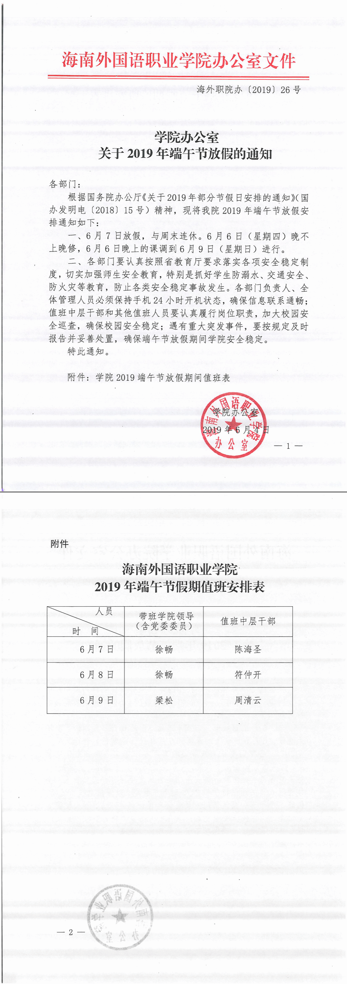 學(xué)院辦公室關(guān)于2019年端午節(jié)放假的通知