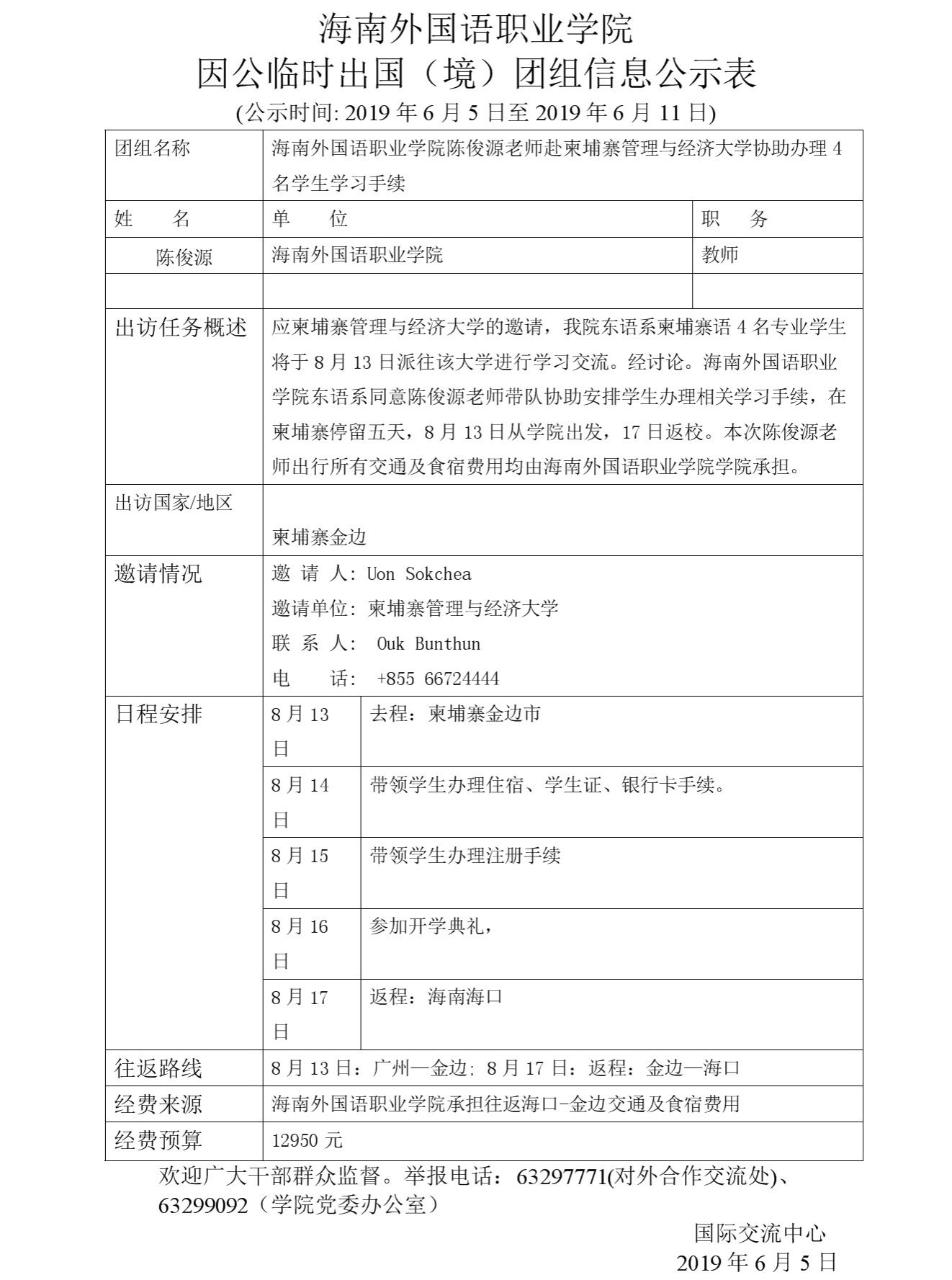 海南外國(guó)語(yǔ)職業(yè)學(xué)院因公臨時(shí)出國(guó)(境)團(tuán)組信息公示表