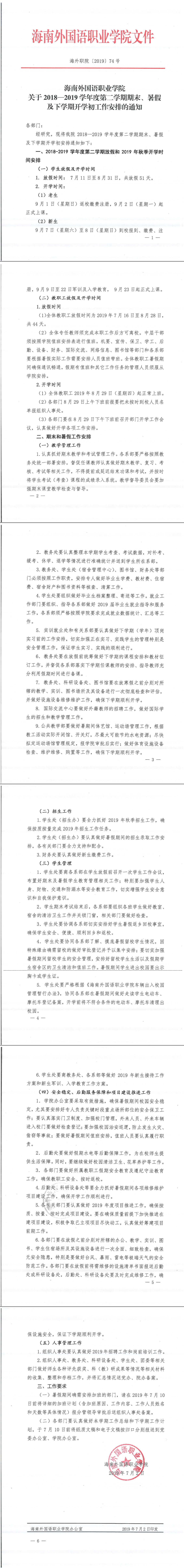 關(guān)于2018—2019學(xué)年度第二學(xué)期期末、暑假及下學(xué)期開學(xué)初工作安排的通知