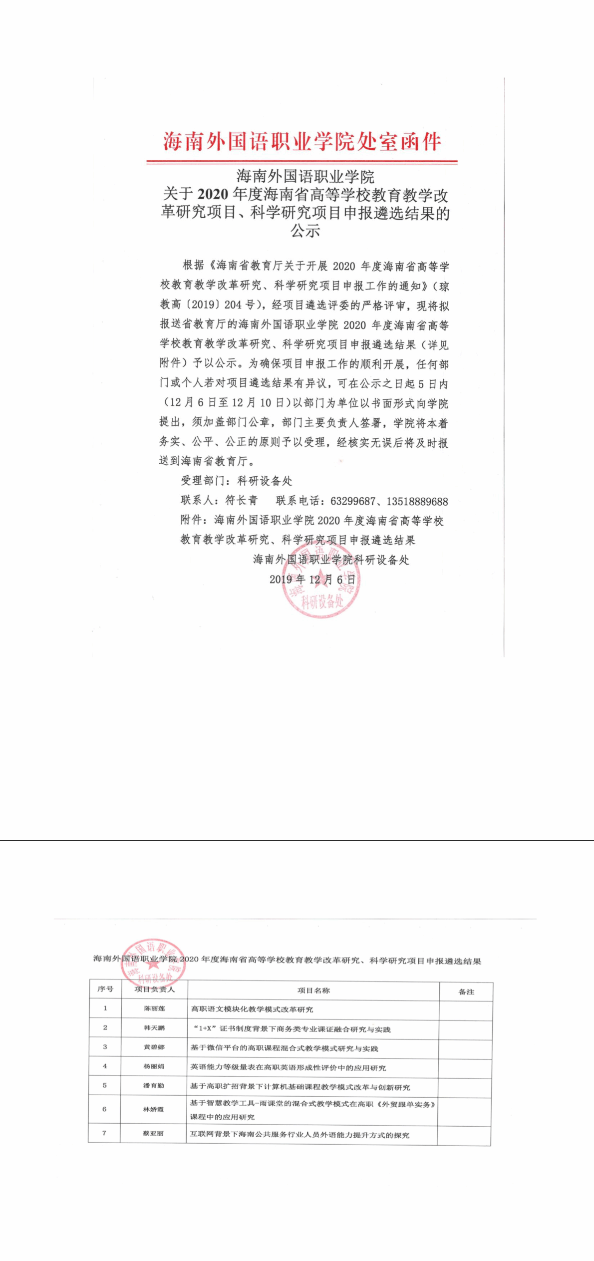 海南外國(guó)語職業(yè)學(xué)院關(guān)于2020年度海南省高等學(xué)校教育教學(xué)改革研究項(xiàng)目、科學(xué)研究項(xiàng)目申報(bào)遴選結(jié)果的公示