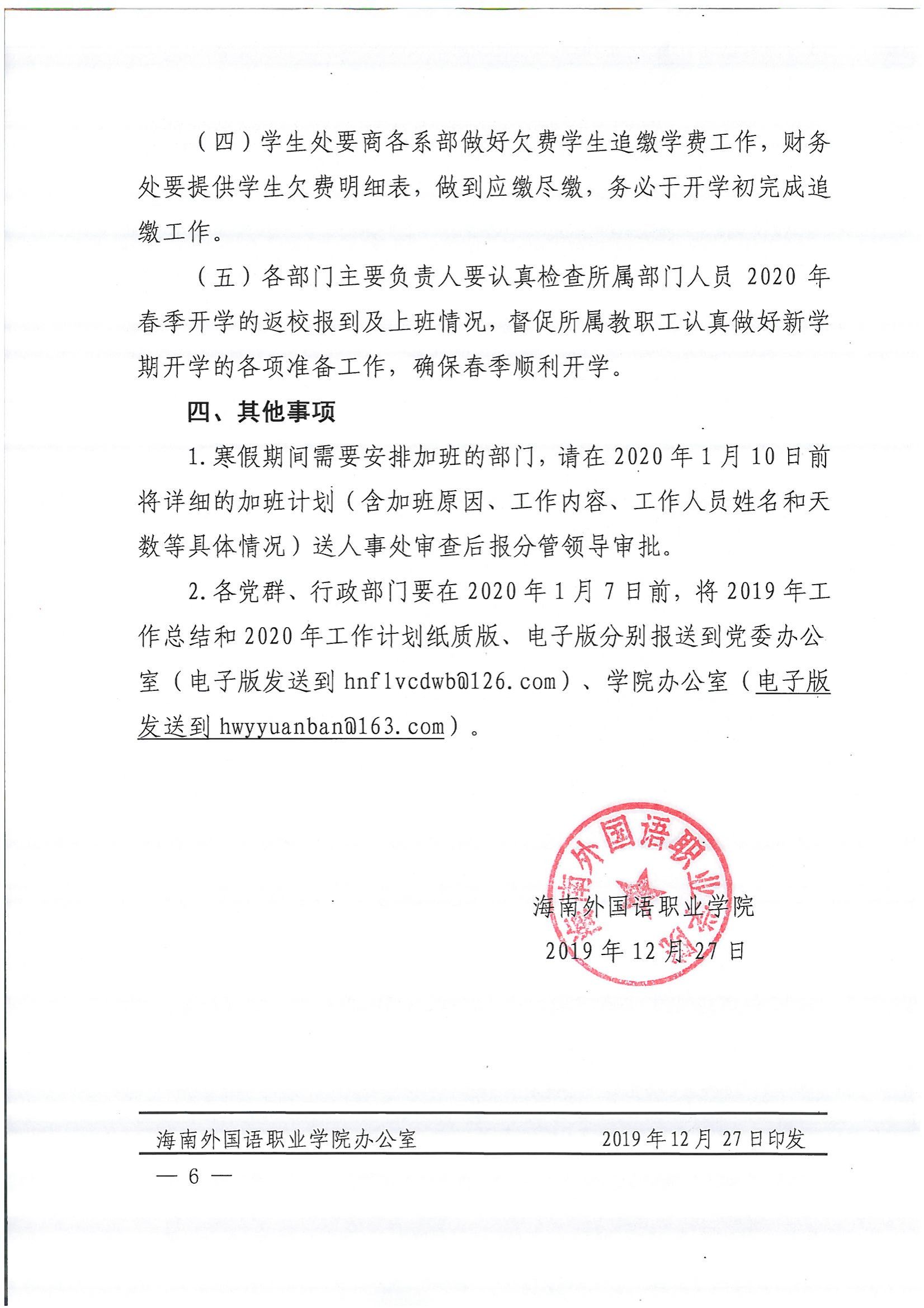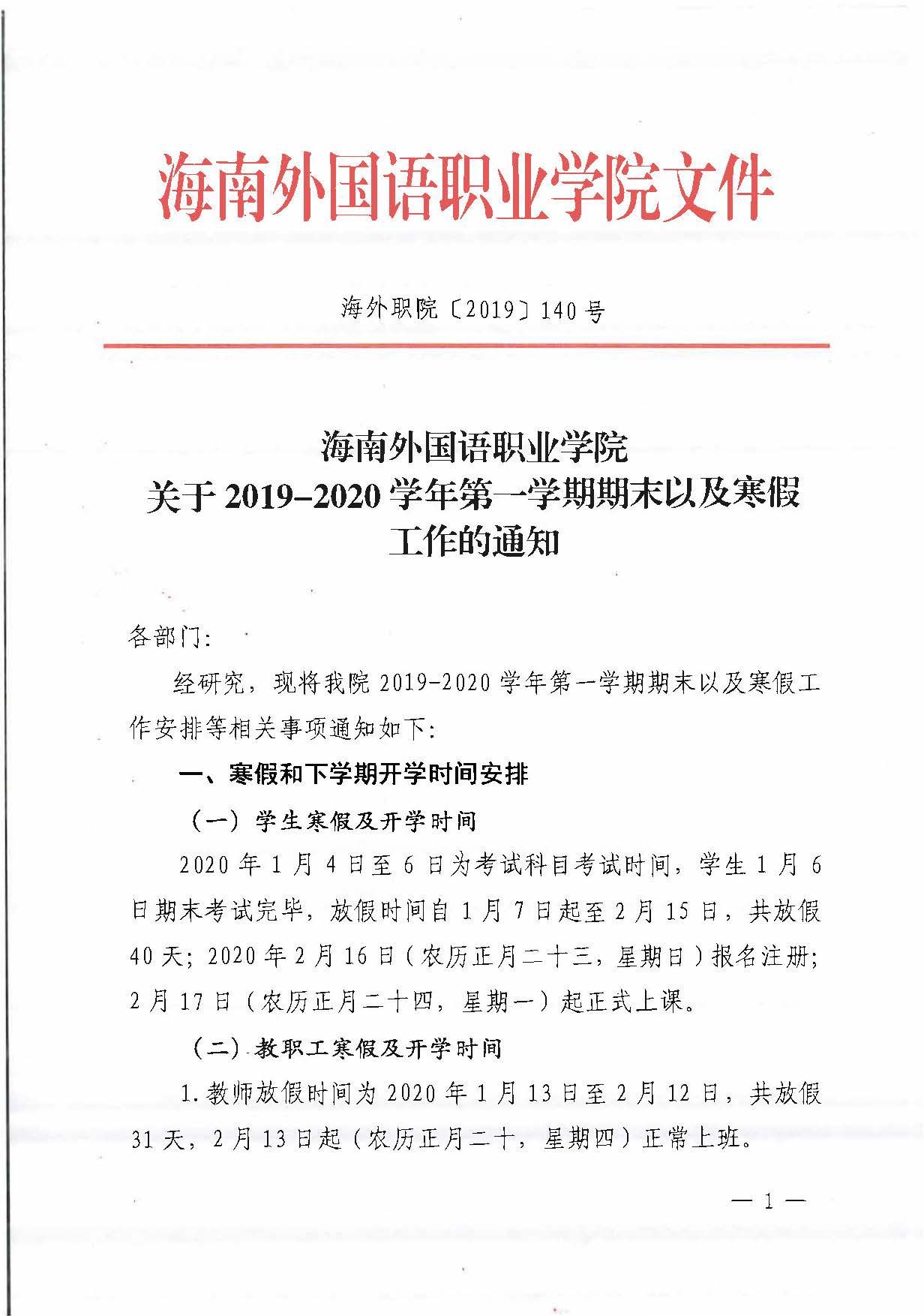 海南外國(guó)語職業(yè)學(xué)院關(guān)于2019-2020學(xué)年第一學(xué)期期末以及寒假工作的通知