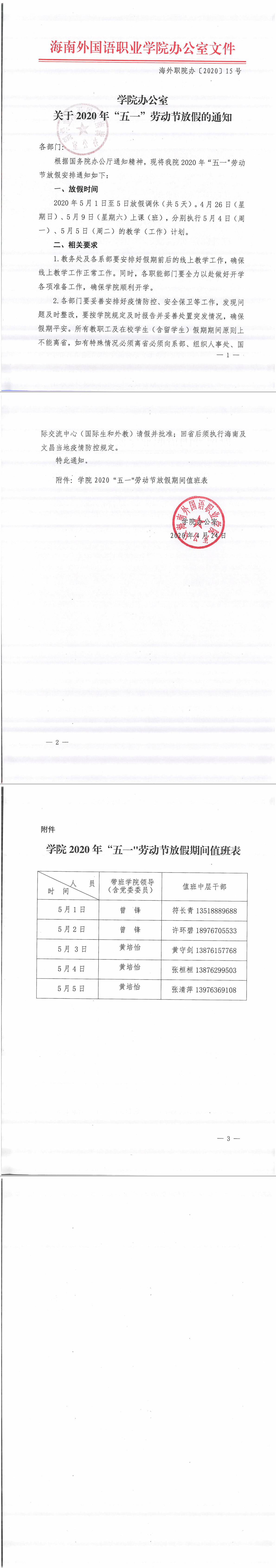 學(xué)院辦公室關(guān)于2020年“五一”勞動節(jié)放假的通知