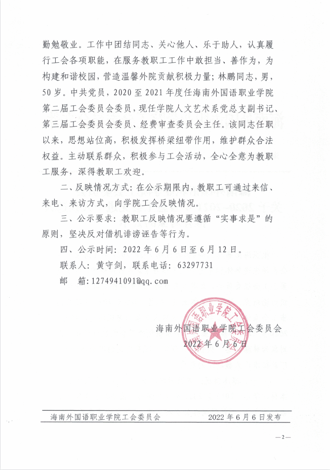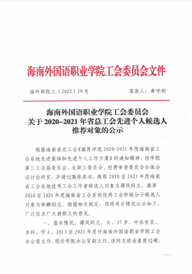 海南外國(guó)語職業(yè)學(xué)院工會(huì)委員會(huì)關(guān)于2020-2021年省總工會(huì)先進(jìn)個(gè)人候選人推薦對(duì)象的公示