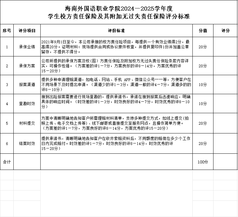為做好2024-2025學(xué)年度學(xué)生校方責(zé)任保險(xiǎn)及其附加無過失責(zé)任保險(xiǎn)的工作,現(xiàn)面向社會(huì)廣泛征集承保機(jī)構(gòu),有關(guān)事項(xiàng)公告如下: