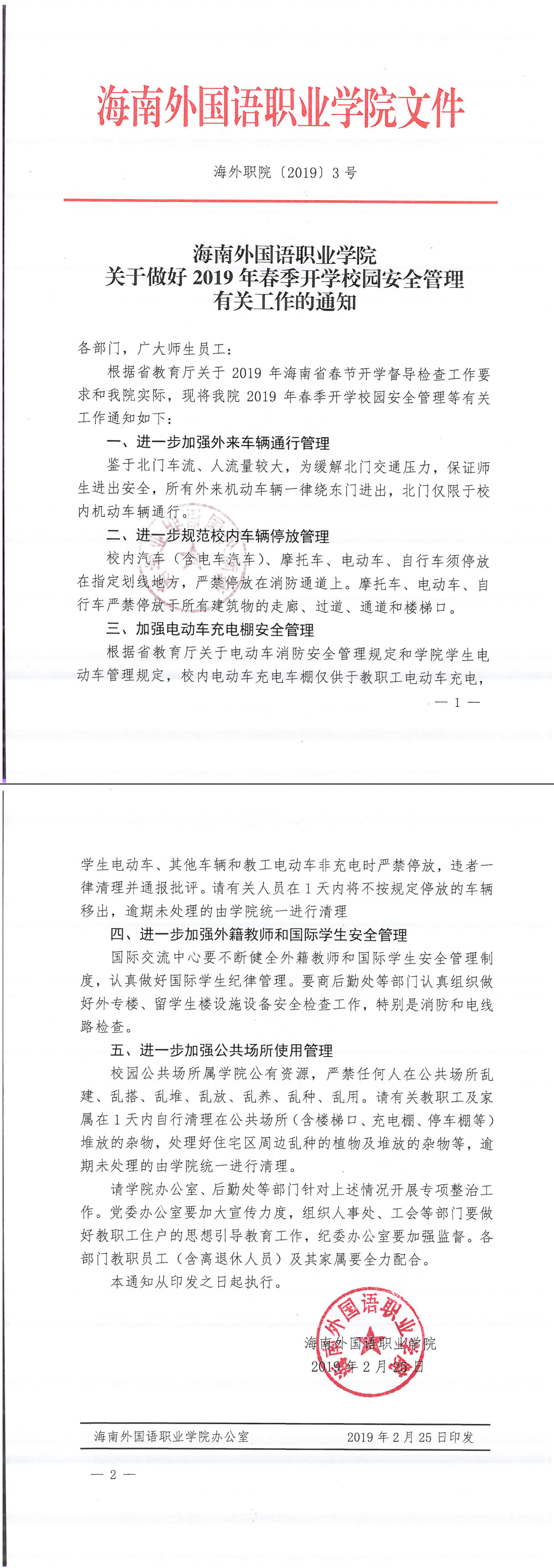 關(guān)于做好2019年春季開學(xué)校園安全管理有關(guān)工作的通知