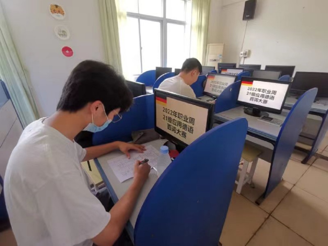 20級應(yīng)用德語班于5月9日早上在1303教室進(jìn)行了德語進(jìn)階百詞大賽活動(dòng),旨在考察學(xué)生的單詞積累量及通過比賽形式提高學(xué)生的學(xué)習(xí)積極性。內(nèi)容以漢德互譯,選詞填空等方式為主,學(xué)生在規(guī)定時(shí)間內(nèi)完成回答并上交。