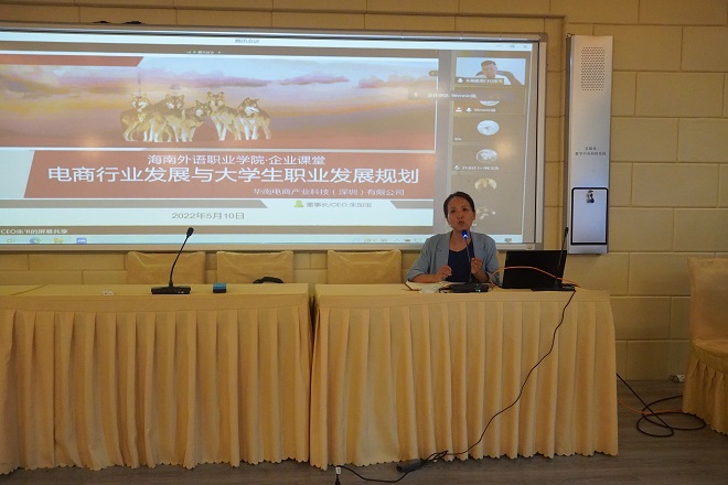 國(guó)際商務(wù)系在2022年職業(yè)活動(dòng)周邀請(qǐng)深圳華南電商產(chǎn)業(yè)科技有限公司董事長(zhǎng)朱加寶先生于5月10日上午給全系學(xué)生做企業(yè)課堂專題講座。