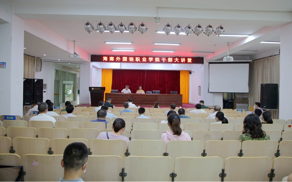 為深入學(xué)習(xí)貫徹習(xí)近平總書(shū)記考察海南重要講話和省第八次黨代會(huì)精神,5月12日下午,海南外國(guó)語(yǔ)職業(yè)學(xué)院2022年第3期干部大講堂在圖書(shū)館多功能報(bào)告廳再次開(kāi)講。學(xué)院黨委書(shū)記佴建喬,黨委副書(shū)記、院長(zhǎng)楊學(xué)前,黨委副書(shū)記黃麗芹,黨委委員、副院長(zhǎng)梁松,黨委委員、副院長(zhǎng)楊毅出席會(huì)議。會(huì)議由黨委辦公室(宣傳統(tǒng)戰(zhàn)部)副主任(副部長(zhǎng))符振忠主持。