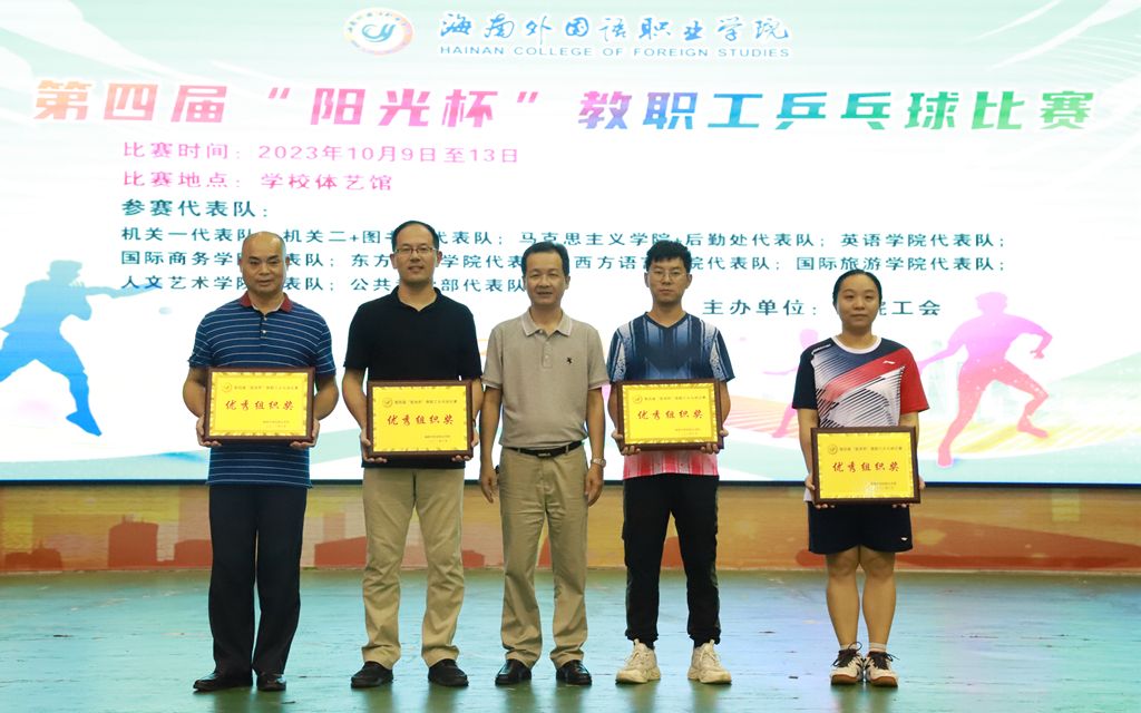 經(jīng)過激烈角逐,最終馬院和后勤代表隊(duì)斬獲比賽混合團(tuán)體賽項(xiàng)第一名,英語學(xué)院代表隊(duì)和機(jī)關(guān)一代表隊(duì)分獲第二名、第三名。公共教學(xué)部代表隊(duì)、機(jī)關(guān)二和圖書館代表隊(duì)、西方語言學(xué)院代表隊(duì)、人文藝術(shù)學(xué)院代表隊(duì)榮獲比賽優(yōu)秀組織獎(jiǎng)。