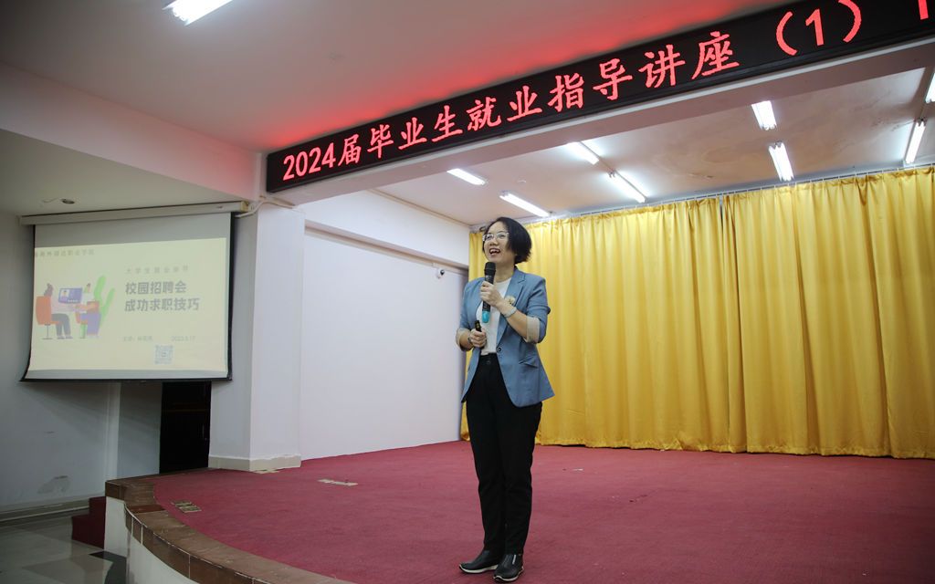 林英燕從如何把握校招機遇、招聘會前精心準(zhǔn)備、了解校招企業(yè)渠道、招聘會與HR溝通技巧、招聘會的面試禮儀、招聘會后跟進復(fù)盤等六大主題展開分享。她指出,校園招聘會是學(xué)校和企業(yè)為學(xué)生提供的資源平臺,就業(yè)競爭率相對較小。校園招聘會求職成功率大于畢業(yè)后自主擇業(yè)成功率。因此,要把握校招機遇,提前做好面試準(zhǔn)備。面試環(huán)節(jié)是決定是否求職成功的重要環(huán)節(jié),她向?qū)W生分享如何制作面試簡歷、什么樣的面試簡歷更能吸引HR的目光以及面試時HR常會問到的問題,包括著裝、站姿、坐姿、眼神、表情、握手的面試禮儀,并提出了成功求職的指導(dǎo)性建議。