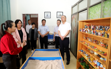 李湖一行先后來到國際語言體驗(yàn)中心、俄羅斯風(fēng)情實(shí)訓(xùn)室、日本風(fēng)情實(shí)訓(xùn)室、韓國風(fēng)情實(shí)訓(xùn)室、二十三年紅旗不倒讀書協(xié)會教室、心理咨詢室等地,實(shí)地了解學(xué)校建設(shè)情況和辦學(xué)成就;在綜合樓一樓東校區(qū)規(guī)劃沙盤前,李湖一行聽取關(guān)于學(xué)校東校區(qū)建設(shè)規(guī)劃工作進(jìn)展,就下一步學(xué)校發(fā)展給予指導(dǎo)。