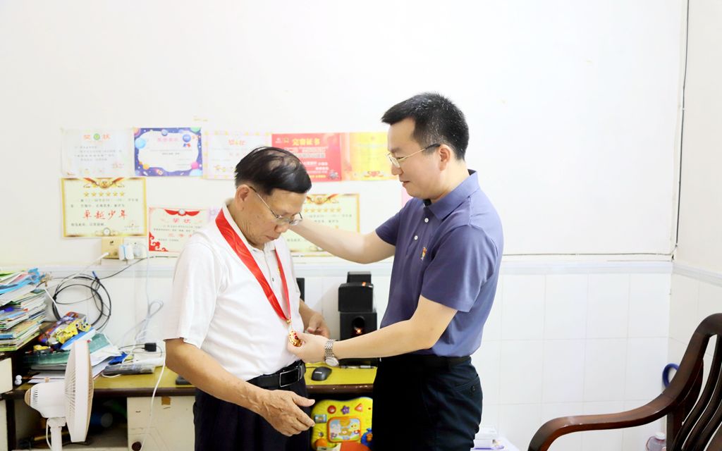 陳正強(qiáng)為莫運(yùn)深頒發(fā)“光榮在黨50年”紀(jì)念章