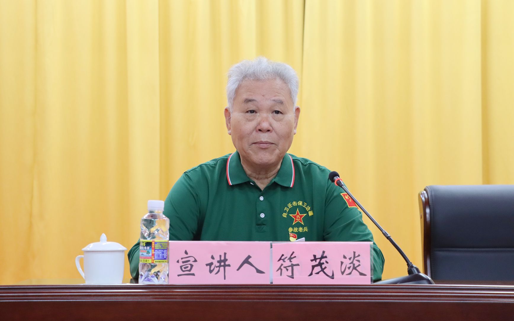 在宣講中,符茂淡結(jié)合親身經(jīng)歷,從老兵的視角、用老兵的語言,為在場的老師同學(xué)們講述了他那段為祖國拋頭顱灑熱血的感人歷史,帶領(lǐng)師生重溫紅色歷史,感悟偉大建黨精神力量,無論是浴血奮戰(zhàn)、保家衛(wèi)國的戰(zhàn)爭場景,還是他勇敢救人的故事,都引起了在場同學(xué)老師們的強(qiáng)烈共鳴。符茂淡的深情講述讓現(xiàn)場師生備受感動,大家深切感受到了新時代退役軍人面對困難挑戰(zhàn)時的英勇無畏,深刻體會到了退役軍人心存大愛、不計(jì)回報(bào)的精神風(fēng)貌。