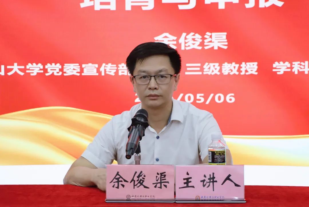 5 月 9 日,我校聚焦基層黨建與思政工作提質(zhì)增效,連續(xù)舉辦兩場專題講座,特別邀請廣東高校網(wǎng)絡(luò)思想政治工作中心常務(wù)副主任、佛山大學(xué)黨委宣傳部部長余俊渠教授到校主講,為黨務(wù)工作者和思政工作人員提供精準(zhǔn)指導(dǎo)。學(xué)校黨委副書記梁松參加講座并講話。