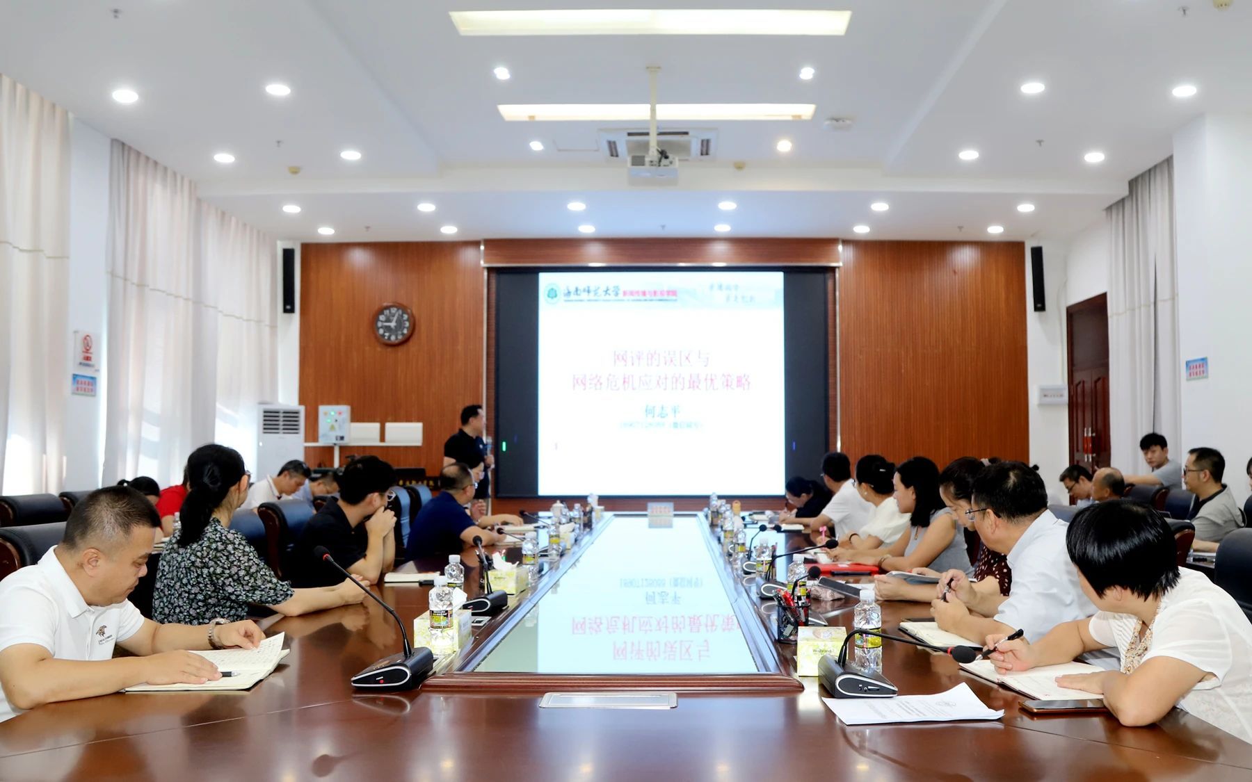 為提升宣傳思想工作隊(duì)伍網(wǎng)絡(luò)輿情管理與處置能力,5月21日,我校邀請(qǐng)海南師范大學(xué)新聞傳播與影視學(xué)院教授、碩士生導(dǎo)師、廣播電視學(xué)學(xué)科帶頭人何志平教授以“新時(shí)代高校輿情處置和管理工作業(yè)務(wù)知識(shí)培訓(xùn)”為主題開展專題講座,圍繞網(wǎng)評(píng)實(shí)踐誤區(qū)、網(wǎng)絡(luò)化表達(dá)技巧、危機(jī)應(yīng)對(duì)策略以及傳播平臺(tái)選擇等維度,為參訓(xùn)人員帶來兼具理論深度與實(shí)操價(jià)值的專業(yè)分享。