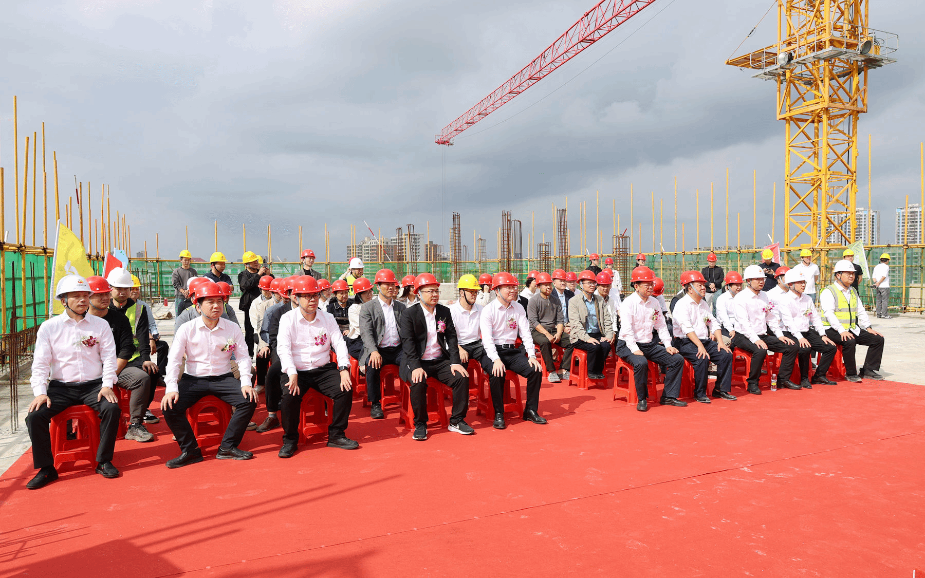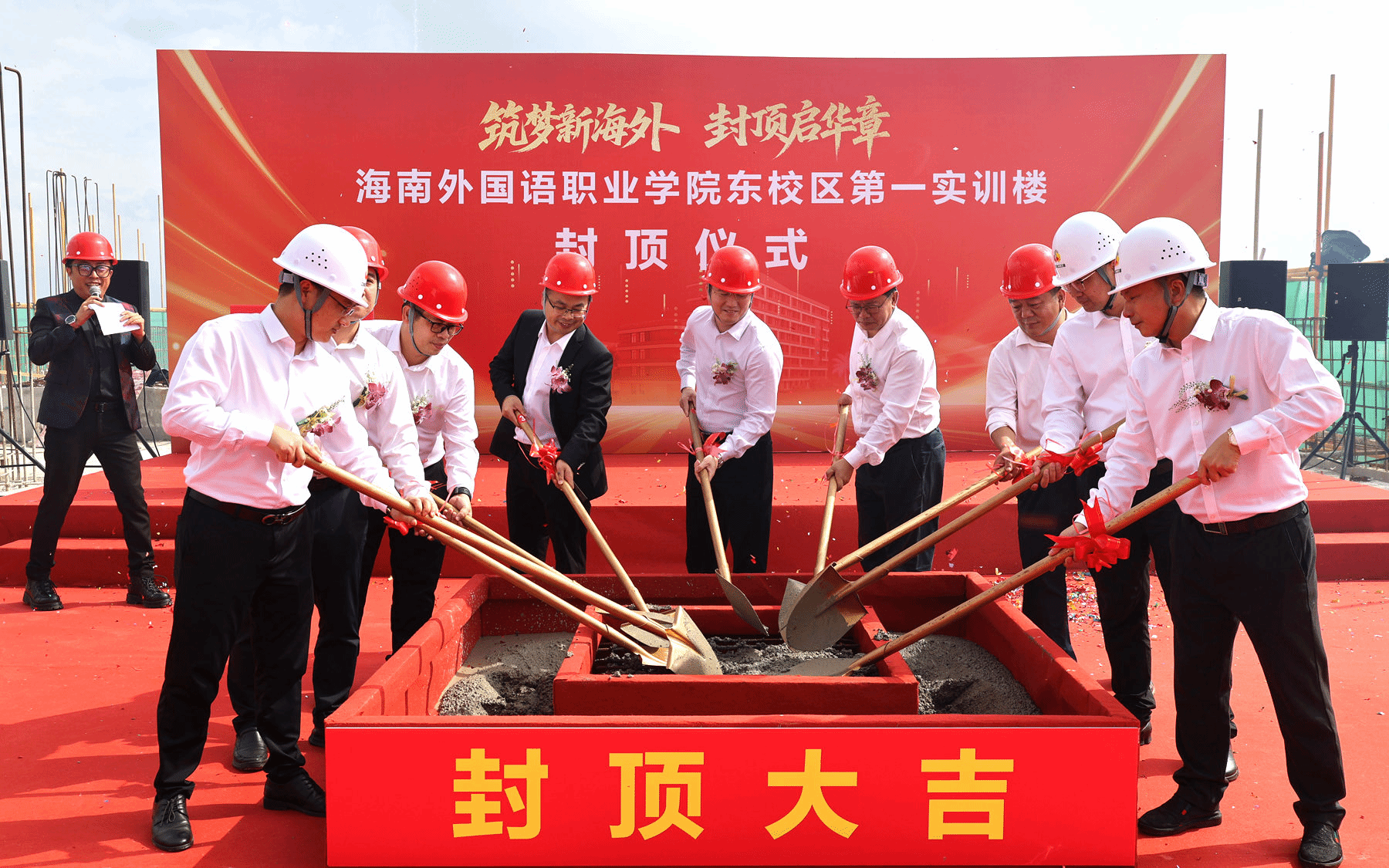 “我宣布,海南外國(guó)語(yǔ)職業(yè)學(xué)院東校區(qū)第一實(shí)訓(xùn)樓正式封頂!”12月4日上午,學(xué)校黨委書(shū)記陳正強(qiáng)的話音剛落,禮炮齊鳴、彩煙綻放,我校東校區(qū)第一實(shí)訓(xùn)樓榮耀封頂。學(xué)校領(lǐng)導(dǎo)陳正強(qiáng)、黃學(xué)彬、苑德宇、陳義華,各參建單位代表、全體中層干部齊聚一堂,共同見(jiàn)證這一關(guān)乎學(xué)校發(fā)展的重要里程碑和學(xué)校新校園建設(shè)邁出的關(guān)鍵步伐,標(biāo)志著我校高質(zhì)量發(fā)展再添新引擎。