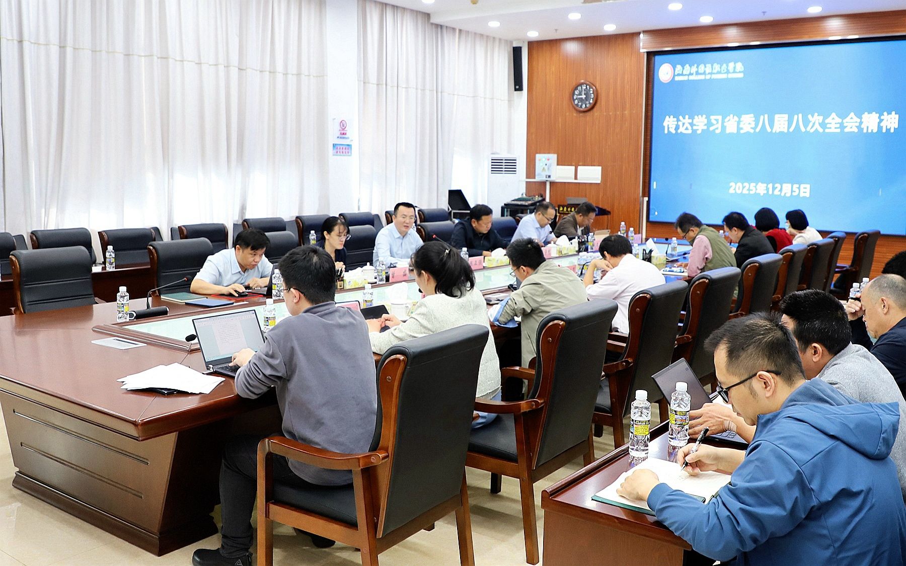 12月5日,學(xué)校黨委召開專題會(huì)議,傳達(dá)學(xué)習(xí)省委八屆八次全會(huì)精神,研究部署學(xué)校貫徹落實(shí)工作。學(xué)校黨委書記陳正強(qiáng)主持會(huì)議并講話,全體校領(lǐng)導(dǎo)、各部門負(fù)責(zé)同志參加會(huì)議。