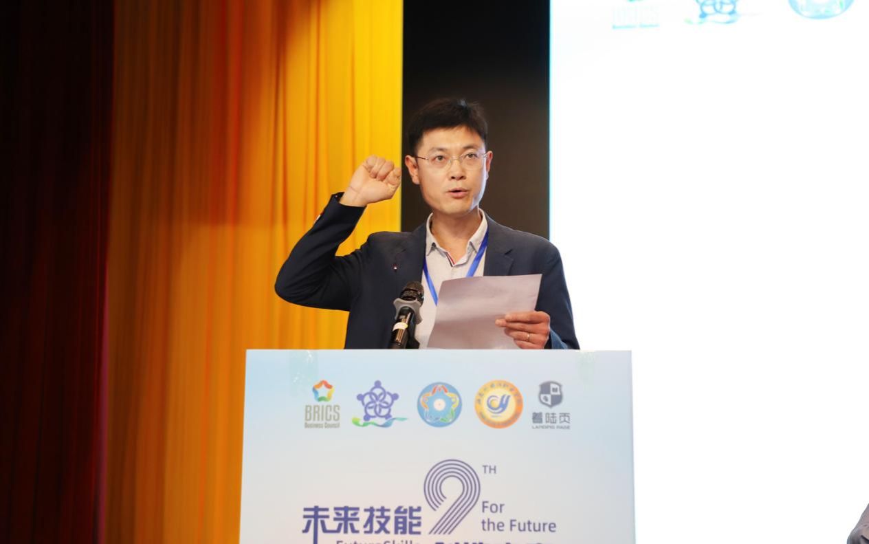 金磚國(guó)家技能發(fā)展與技術(shù)創(chuàng)新大賽組委會(huì)執(zhí)委會(huì)主席劉振英博士發(fā)表線上講話,闡述了大賽的重要意義,強(qiáng)調(diào)了其在促進(jìn)國(guó)際技能合作、推動(dòng)技術(shù)創(chuàng)新方面的核心價(jià)值,為全體參賽人員送上殷切祝福與鼓勵(lì)。