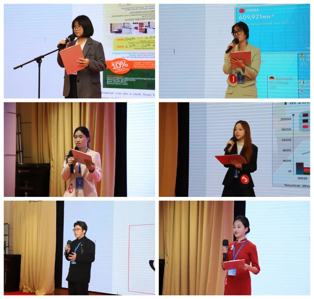 賽項圍繞“中國故事”“情景交流”“職場描述”“職場辯論”四大核心環(huán)節(jié)展開,從語言表達、場景應變、專業(yè)適配到邏輯思辨,多維度考驗選手們的英語綜合能力。賽場之上,選手們狀態(tài)飽滿,用充沛的感情敘述中國故事、出色的口語溝通能力完成情景交流、專業(yè)的術(shù)語進行職場描述、清晰的邏輯思維完成職場辯論,充分展現(xiàn)出扎實的英語口語能力與優(yōu)秀的表現(xiàn)能力。