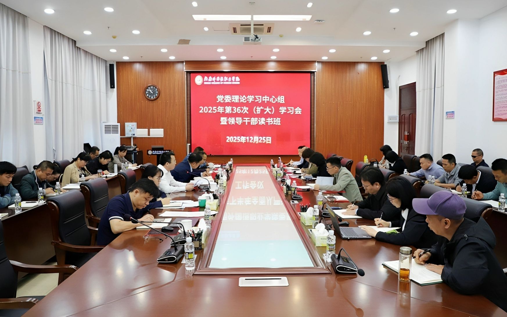 12月24日至25日,學(xué)校黨委理論學(xué)習(xí)中心組(擴(kuò)大)學(xué)習(xí)會(huì)暨領(lǐng)導(dǎo)班子讀書班舉行。本次學(xué)習(xí)采取集中學(xué)習(xí)研討、集中自學(xué)、觀看專題片、現(xiàn)場(chǎng)學(xué)習(xí)等多種形式,圍繞《習(xí)近平談治國(guó)理政》第五卷、習(xí)近平法治思想、習(xí)近平總書記關(guān)于黨的自我革命的重要思想和關(guān)于教育的重要論述等開展學(xué)習(xí)研討。學(xué)校領(lǐng)導(dǎo)班子成員參加學(xué)習(xí)。