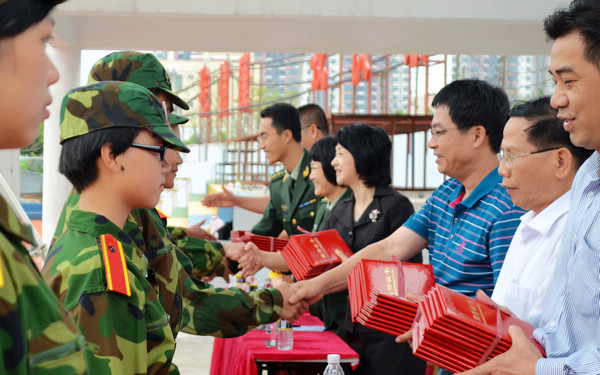 學(xué)院黨委書記陳禮民,院長(zhǎng)李渝鳳,黨委副書記、紀(jì)委書記莫運(yùn)深,各部門有關(guān)負(fù)責(zé)人,以及文昌市公安邊防支隊(duì)云倩偌隊(duì)長(zhǎng),文昌市公安邊防支隊(duì)機(jī)動(dòng)中隊(duì)王棟動(dòng)指導(dǎo)員,文昌市公安邊防支隊(duì)機(jī)動(dòng)中隊(duì)參訓(xùn)教官等領(lǐng)導(dǎo)和嘉賓出席了此次新生軍訓(xùn)總結(jié)大會(huì)。