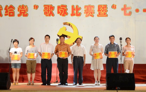 七月的天空流光溢彩,七月的大地遍地飛歌,載歌載舞齊唱紅色歲月頌,臺上臺下同抒熾熱赤子情。為隆重慶祝中國共產黨成立92周年,重溫黨的光輝歷程,謳歌黨的豐功偉績,表彰獎勵我院創(chuàng)先爭優(yōu)和集中整治“庸懶散奢貪”活動開展以來涌現(xiàn)出的先進基層黨組織、優(yōu)秀黨務工作者和優(yōu)秀共產黨員,進一步激勵動員全院各級黨組織和廣大共產黨員振奮精神,扎實工作,奮力推進學院事業(yè)科學發(fā)展新局面。6月27日晚,我院2013年“頌歌獻給黨”歌詠比賽暨“七·一”表彰晚會在運動場隆重舉行。