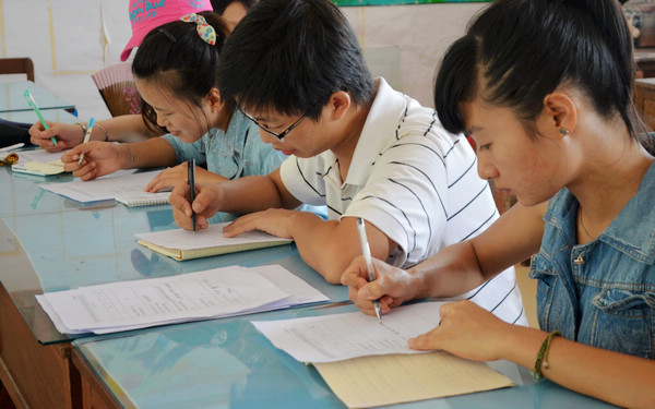 師生代表認(rèn)真填寫《海南外國語職業(yè)學(xué)院作風(fēng)建設(shè)意見征求表》