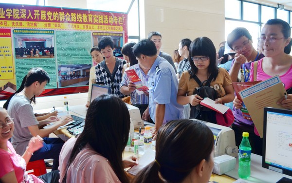 報(bào)到現(xiàn)場,新生登記、物品發(fā)放、車輛疏導(dǎo)等工作仍在有條不紊地進(jìn)行著。報(bào)到大廳,工作人員忙不停息地為新生辦理著入校手續(xù),咨詢處有關(guān)人員則是耐心解答著學(xué)生和家長們的問題;各系部學(xué)生志愿者為初進(jìn)校的學(xué)弟、學(xué)妹們解答疑問、引路、提行李,辦理入學(xué)登記,提供各項(xiàng)熱情周到的服務(wù);學(xué)院相關(guān)部門則認(rèn)真疏導(dǎo)來校報(bào)到的各種車輛,使車輛停放秩序井然;學(xué)院財(cái)務(wù)實(shí)行的學(xué)生卡學(xué)費(fèi)劃扣更使今年的新生繳費(fèi)效率得到極大提高。