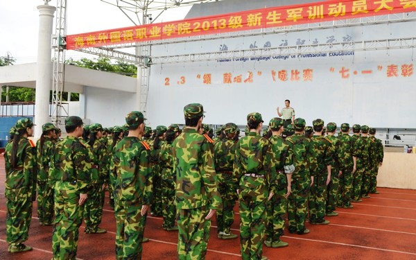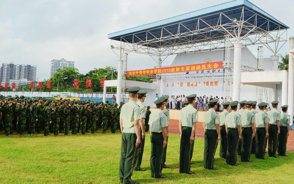 會(huì)上,新生代表作發(fā)言,在發(fā)言中透露出了參訓(xùn)同學(xué)們對(duì)于軍訓(xùn)的熱情與期待;學(xué)生處負(fù)責(zé)人黃守劍宣讀了軍訓(xùn)中隊(duì)編制,并介紹了文昌市公安邊防支隊(duì)承訓(xùn)的18名領(lǐng)導(dǎo)與教官。最后,莫運(yùn)深副書記宣布2013級(jí)新生軍訓(xùn)正式開(kāi)訓(xùn)。