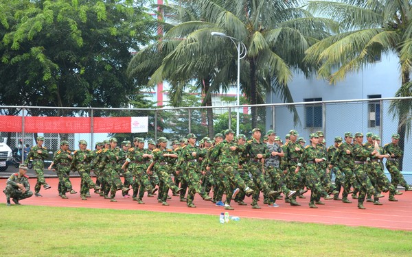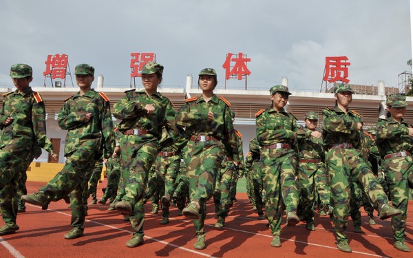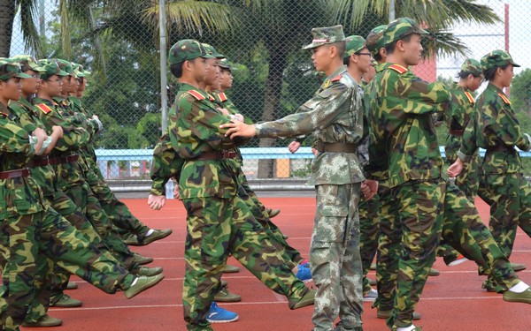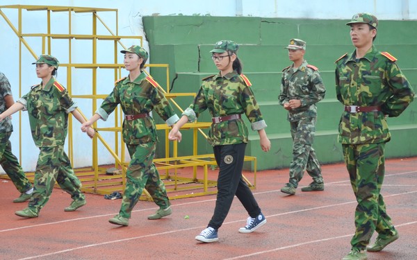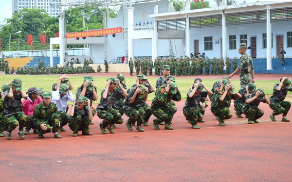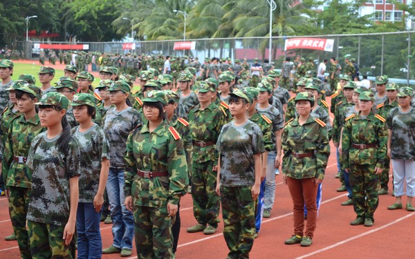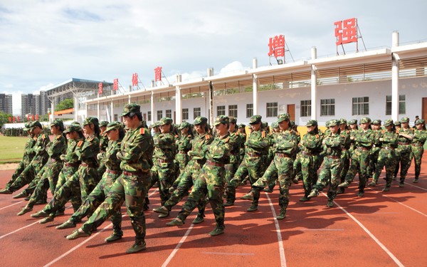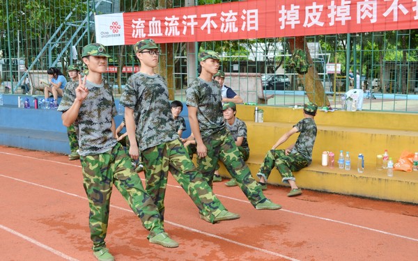 筆直的腰身,挺起的胸膛,昂揚的勢氣,佇立在驕陽下的不算高大的身影,站成了一個個堅定的信念……鏗鏘的腳步聲在運動場上響起,邁出了少年們的無悔青春,他們用汗水拼搏著,為鑄就那鐵的信念、鋼的意志努力奮斗著!“流血流汗不流淚,掉皮掉肉不掉隊”,他們用行動告訴大家他們是可以的!就算皮膚曬得黝黑,就算嚴厲苛刻的教官們有時會有些“不近人情”,他們也毫無抱怨,休息好了就繼續(xù)“戰(zhàn)斗”。