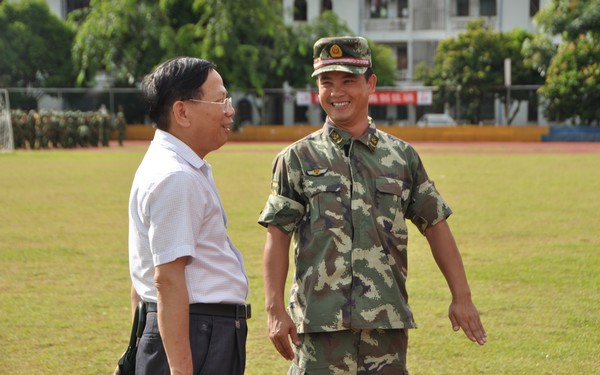 學(xué)院黨委副書記、紀委書記代表學(xué)院來到軍訓(xùn)現(xiàn)場,慰問新生及教官