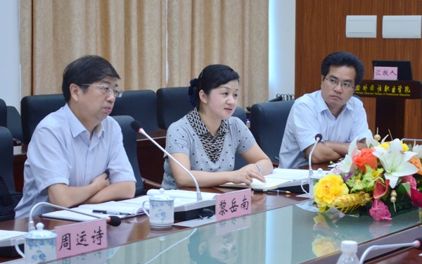 會(huì)上,李渝鳳院長(zhǎng)致歡迎詞,對(duì)前來調(diào)研的高教處領(lǐng)導(dǎo)表示熱烈歡迎和衷心感謝。高等教育處處長(zhǎng)黎岳南在發(fā)言中,對(duì)我院在現(xiàn)代職業(yè)教育體系構(gòu)建、中高職對(duì)接等方面進(jìn)行的積極探索及取得的成績(jī)給予了充分肯定。