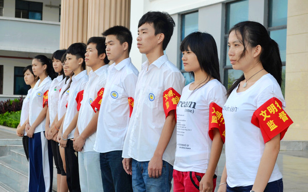 9月26日下午,我院綜合樓前人聲鼎沸,一場簡單而又鄭重的儀式在這里召開。臺上,師生分兩排整齊站立著,神情認(rèn)真、目光堅(jiān)定;臺下,不同班級同學(xué)按小縱隊(duì)站列,手掌隨著臺上講話的內(nèi)容不斷拍動;音箱里,傳出的句句話語擲地有聲——“文明是我們立足社會的根本,請大家不要丟棄它”、“讓我們一起行動起來吧,從我做起,從現(xiàn)在做起,摒棄陳規(guī)舊習(xí),崇尚科學(xué)文明,弘揚(yáng)社會主義新風(fēng)尚”……