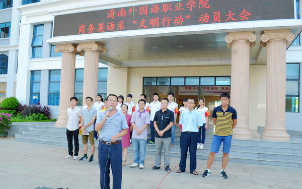 商務(wù)英語系黨總支負(fù)責(zé)人吳東陽,全體輔導(dǎo)員、班主任,以及全系學(xué)生參加了動員大會。該系黨總支負(fù)責(zé)人吳東陽向師生們傳達(dá)了“文明行動”的活動主題、背景意義、主要內(nèi)容、實(shí)施步驟,就具體執(zhí)行細(xì)節(jié)作動員、提要求、寄希望。