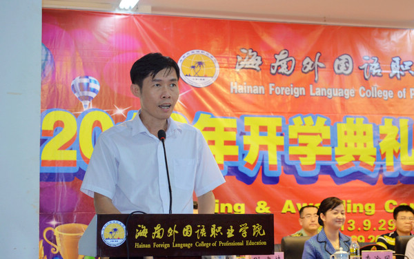 文昌市副市長黃心奮在講話中,向?qū)W院新生致以親切問候,向獲得表彰的學(xué)生致以熱烈祝賀。他表示,隨著文昌市發(fā)展步伐加快,文昌市委、市政府將繼續(xù)重視、支持學(xué)院的建設(shè)和發(fā)展,全面落實共建協(xié)議,為學(xué)院的改革與發(fā)展創(chuàng)造良好的辦學(xué)環(huán)境。同時,希望學(xué)院肩負(fù)起為適應(yīng)文昌經(jīng)濟(jì)社會建設(shè)培育更多優(yōu)秀人才,為文昌發(fā)展做出更大貢獻(xiàn)。