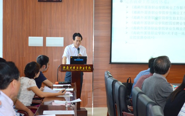 11月5日上午,在海南省人力資源開發(fā)局副局長趙微、海南省人力資源開發(fā)局人才管理服務處處長文振忠的帶領下,就業(yè)檢查評估工作組一行10人對我院2011—2013學年度畢業(yè)生就業(yè)工作進行了檢查和評估。學院黨委書記陳禮民,黨委副書記、紀委書記莫運深,副院長周運詩,相關部門主要負責人、系部黨政主要負責人,以及相關部門、系部就業(yè)指導員參加了評估匯報會。