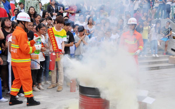 11月8日上午,文昌市公安消防支隊在我院文化廣場舉行2013年“119”宣傳月“平安我做主”大型疏散演練活動,我院黨委副書記、紀委書記莫運深參加活動并親身體驗滅火演練,來自各系部的約1500名師生參加了疏散演練活動。市委常委、公安局長林剛,市政府辦、市公安消防支隊、市安監(jiān)局、教育局、文體局等職能部門領導,全市各校師生代表,社會單位代表等觀摩了此次演練。