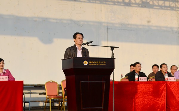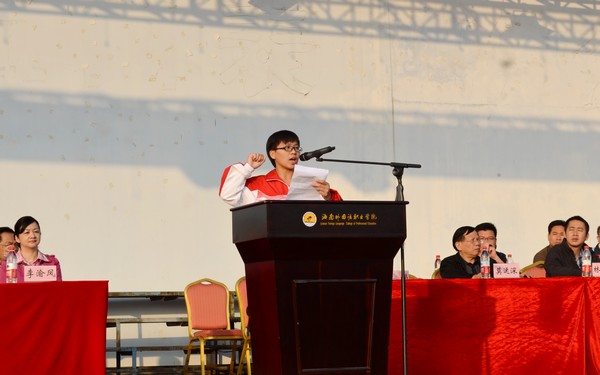 學(xué)院黨委副書記、紀(jì)委書記,運(yùn)動會組委會副主任莫運(yùn)深致開幕辭,他指出作為學(xué)院的一項(xiàng)傳統(tǒng)體育活動,田徑運(yùn)動會既是對廣大師生身體素質(zhì)和體育運(yùn)動水平的一次檢閱,也是全院師生道德品質(zhì)、思想作風(fēng)、精神面貌的一次展示,更是落實(shí)素質(zhì)教育的一次重要實(shí)踐。他希望同學(xué)們在運(yùn)動會賽場上發(fā)揚(yáng)勇于拼搏和團(tuán)隊(duì)合作的精神,展示我院積極向上的精神面貌和高尚優(yōu)良的到的作風(fēng),同時要牢固樹立終身鍛煉的體育健康理念,走進(jìn)陽光,走進(jìn)操場,走進(jìn)自然,實(shí)現(xiàn)“每天鍛煉一小時,健康工作五十年,幸福生活一輩子”的美好愿望。