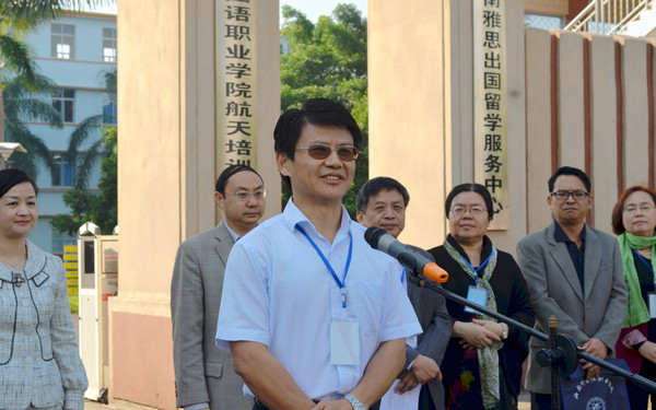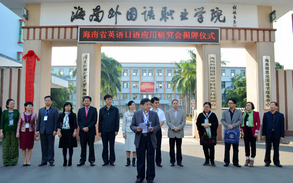 12月6日上午,由我院發(fā)起的海南省英語(yǔ)日語(yǔ)應(yīng)用研究會(huì)在我院北校門(mén)舉行揭牌儀式,至此,這個(gè)用時(shí)近兩年籌備的旨在為我省社會(huì)經(jīng)濟(jì)發(fā)展輸送專(zhuān)業(yè)化高素質(zhì)應(yīng)用型外語(yǔ)人才的學(xué)術(shù)性社會(huì)組織正式宣告成立。業(yè)內(nèi)專(zhuān)家認(rèn)為,作為我省外語(yǔ)語(yǔ)種最齊全的高校,我院牽頭成立海南省英語(yǔ)日語(yǔ)應(yīng)用研究會(huì),對(duì)英、日語(yǔ)應(yīng)用領(lǐng)域培育和發(fā)展新型教育模式,建立健全研究機(jī)制,推進(jìn)應(yīng)用英、日語(yǔ)專(zhuān)業(yè)化建設(shè),更好地為我省經(jīng)濟(jì)社會(huì)建設(shè)服務(wù)等方面將做出積極貢獻(xiàn)。