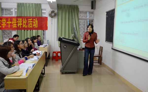 初冬的天,時(shí)常細(xì)雨紛飛,寒意久久未了,而海外院的校園卻暖意融融,激情四射,12月20日,我院第三屆“教學(xué)十佳”(第二輪)評(píng)比活動(dòng)如火如荼地展開,來自各系部的7名優(yōu)秀教師精神抖擻、信心滿懷地走進(jìn)課堂,盡展教藝,盡現(xiàn)才情。