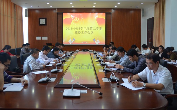 2月28日下午,我院組織統(tǒng)戰(zhàn)部在綜合樓七樓第一會議室召開2013—2014學年度第二學期黨務(wù)工作會議,傳達相關(guān)會議精神,安排部署新學期學院黨務(wù)工作。學院黨委副書記、紀委書記莫運深出席會議并講話,組織統(tǒng)戰(zhàn)部、團委以及特邀黨組織建設(shè)員、各黨總支、直屬黨支部有關(guān)人員參加了會議。會議由組織統(tǒng)戰(zhàn)部部長許環(huán)碧主持。